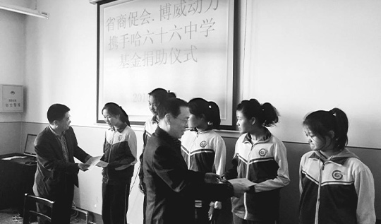 黑龍江日報5月19日訊17日下午,黑龍江省商務合作促進會攜愛心會員企業來到位于哈爾濱市香坊區幸福村的哈爾濱市第六十六中學,看望在這所條件簡陋的農村學校堅持教學與求知的師生們